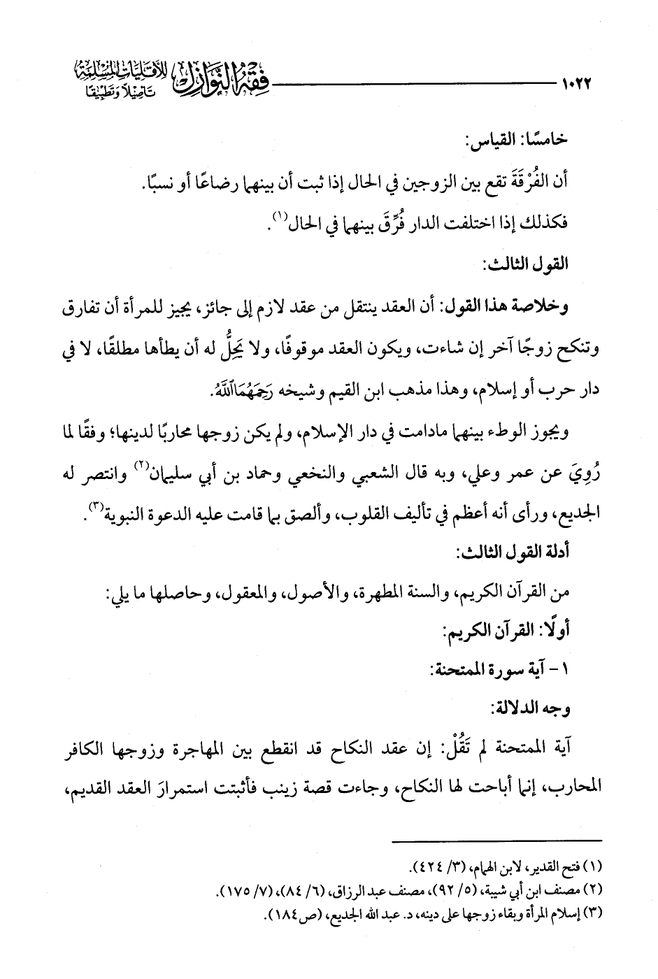(¬3) إسلام المرأة وبقاء زوجها على دينه، د. عبد الله الجديع، (ص 184).