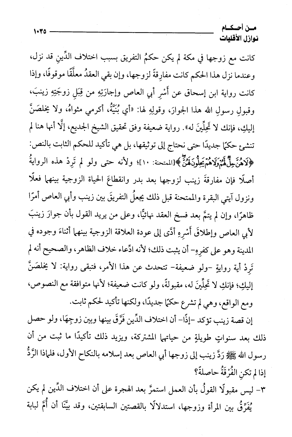 3 - ليس مقبولًا القولُ بأن العمل استمرَّ بعد الهجرة على أن اختلاف الدِّين لم يكن يُفَرِّقُ بين المرأة وزوجها، استدلالًا بالقصتين السابقتين، وقد بيَّنَا أن أُمَّ لبابة