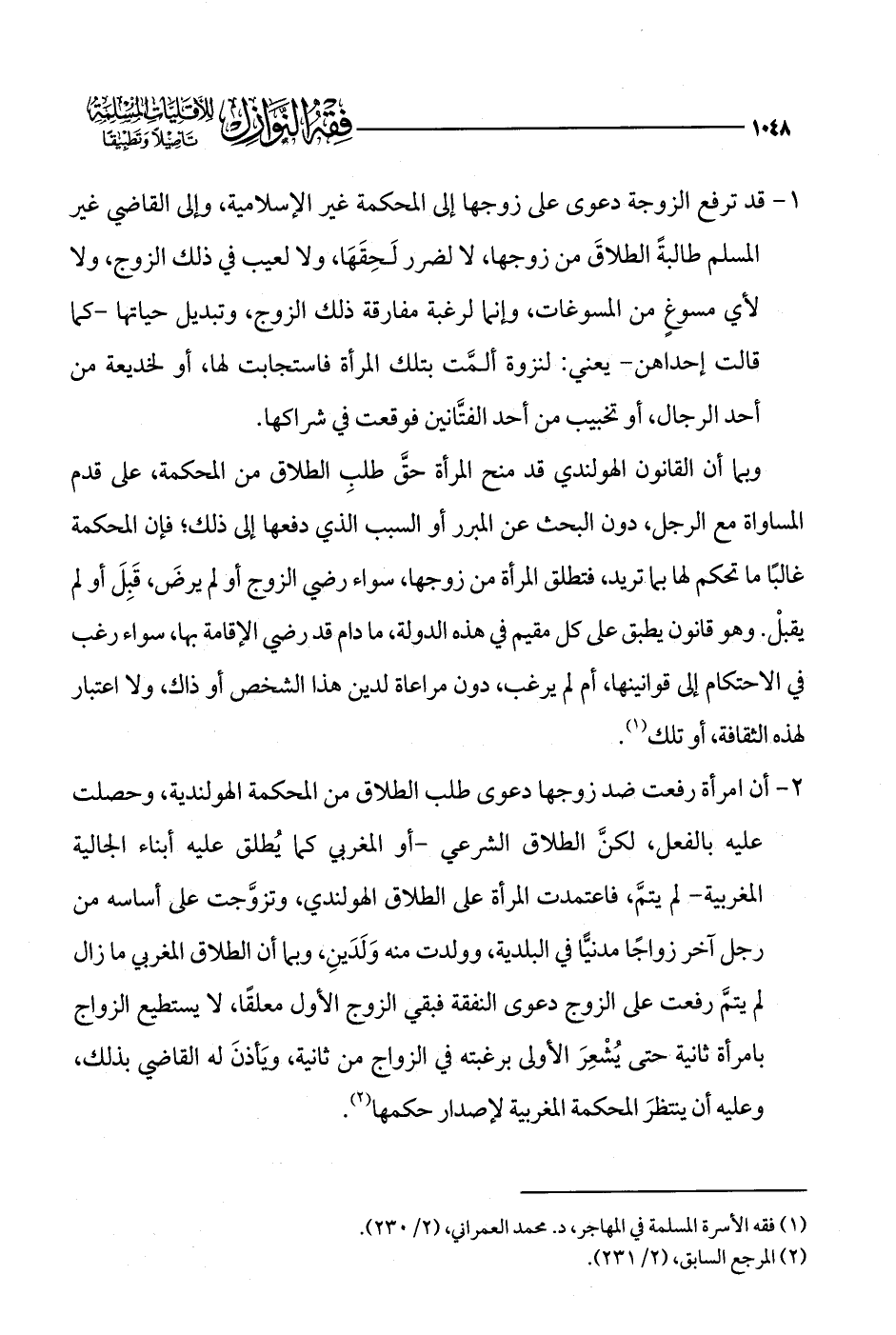 (¬1) فقه الأسرة المسلمة في المهاجر، د. محمد العمراني، (2/ 230).