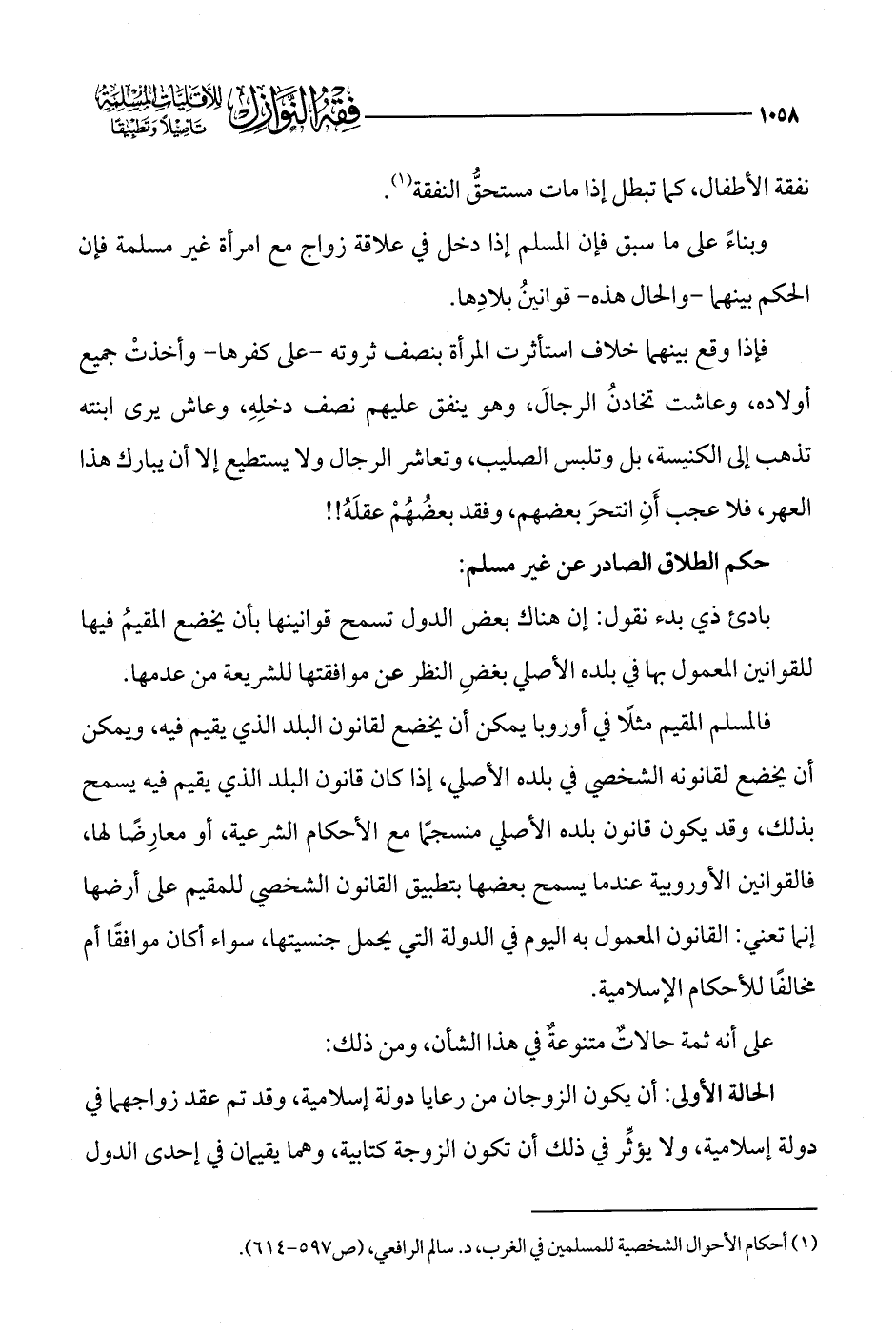 (¬1) أحكام الأحوال الشخصية للمسلمين في الغرب، د. سالم الرافعي، (ص 597 - 614).