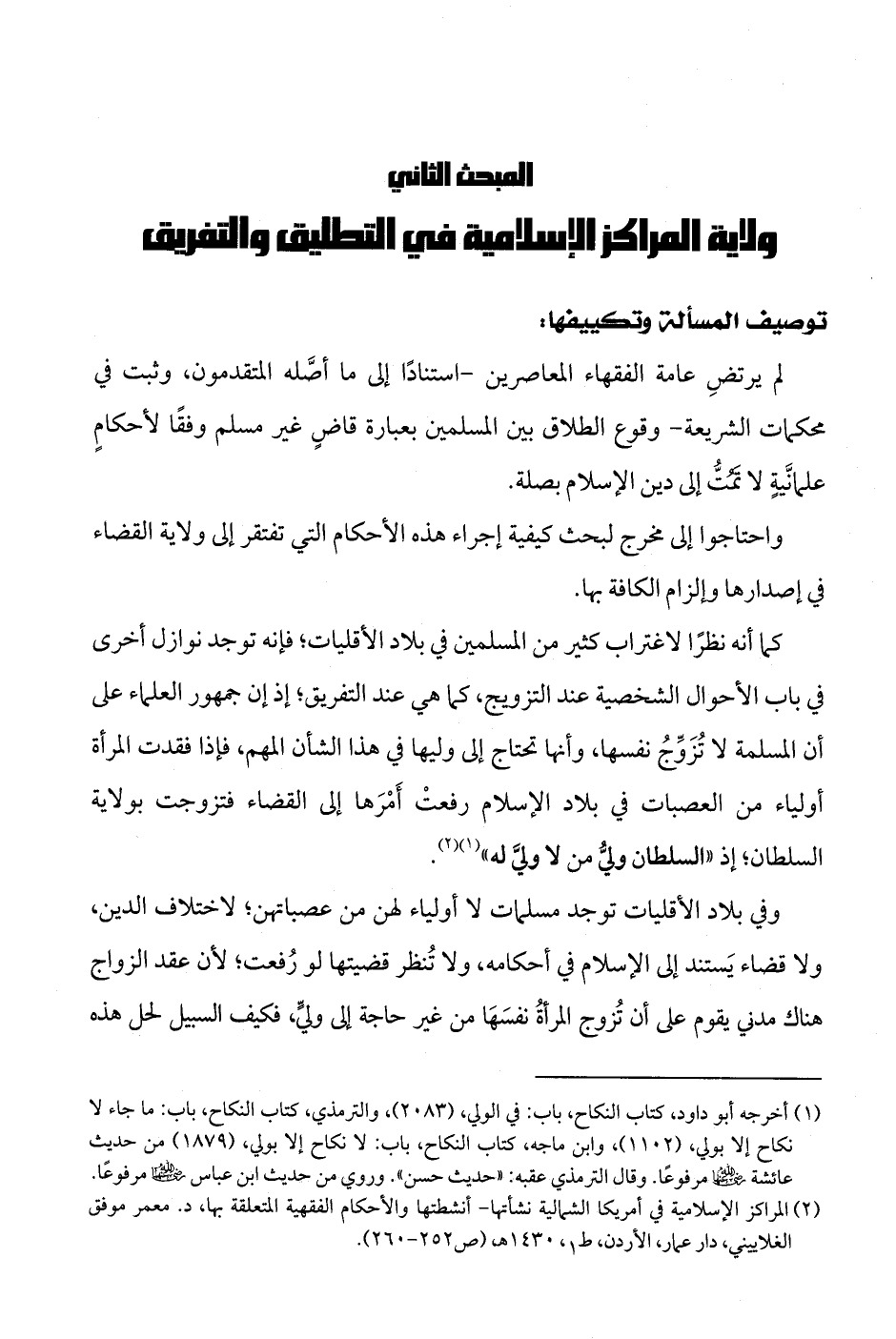 ولاية المراكز الإسلامية في التطليق والتفريق