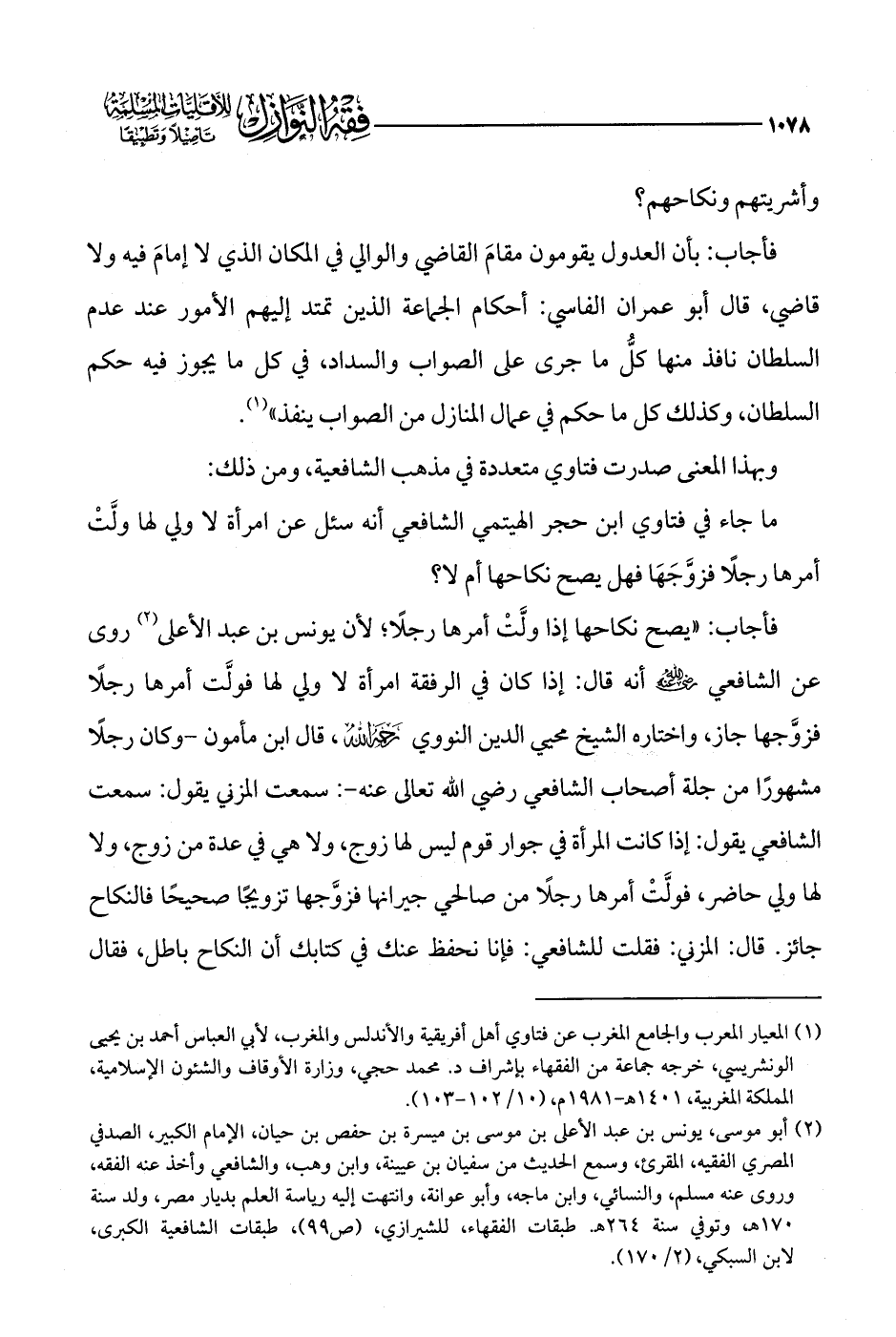 (¬1) المعيار المعرب والجامع المغرب عن فتاوي أهل أفريقية والأندلس والمغرب، لأبي العباس أحمد بن يحيى الونشريسي، خرجه جماعة من الفقهاء بإشراف د. محمد حجي، وزارة الأوقاف والشئون الإسلامية، المملكة المغربية، 1401 هـ - 1981 م، (10/ 102 - 103).