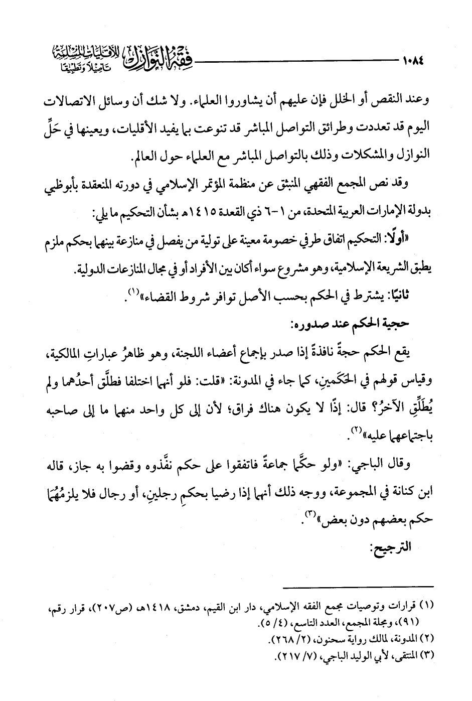(¬1) قرارات وتوصيات مجمع الفقه الإسلامي، دار ابن القيم، دمشق، 1418 هـ (ص 207)، قرار رقم، (91)، ومجلة المجمع، العدد التاسع، (4/ 5).