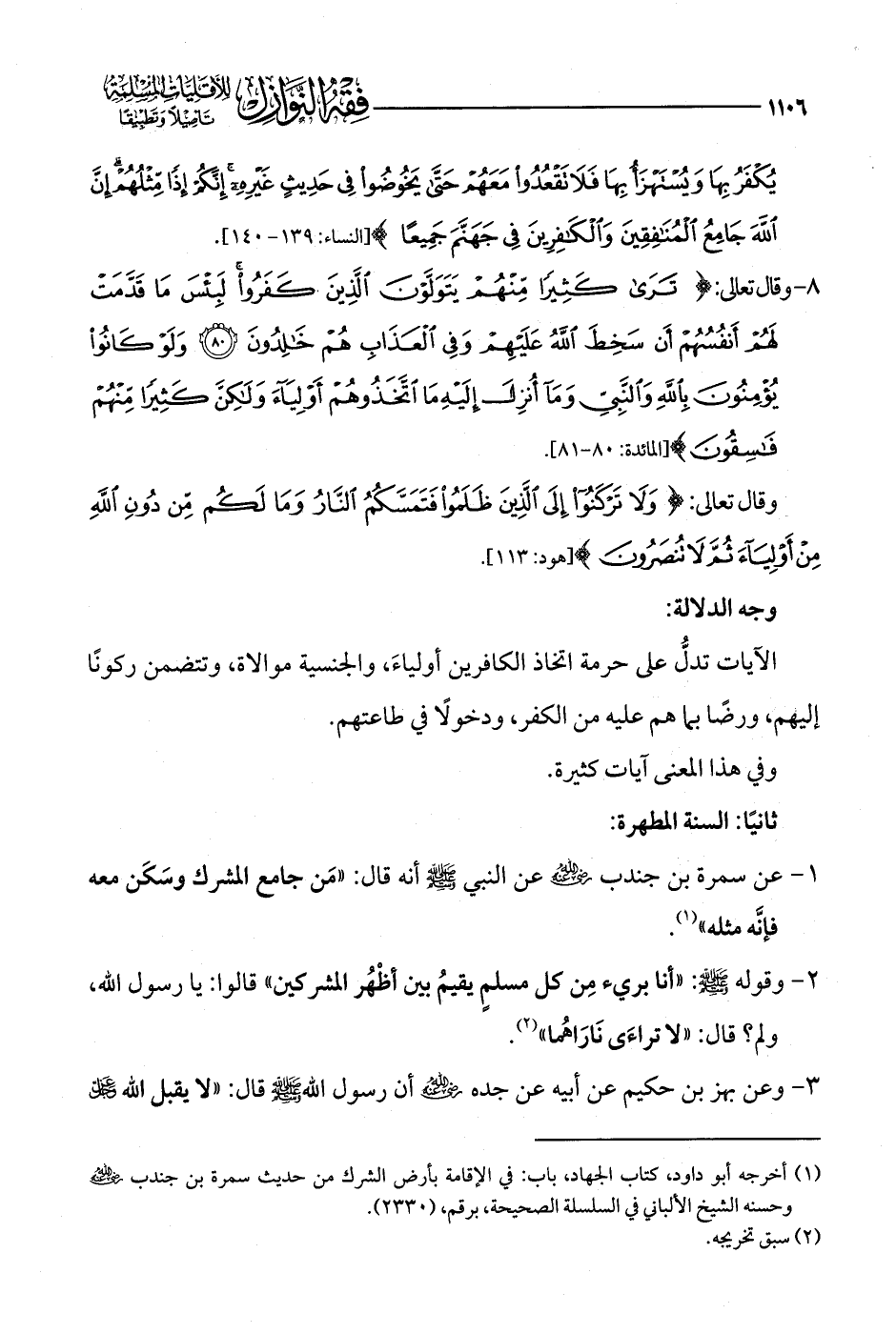 (¬1) أخرجه أبو داود، كتاب الجهاد، باب: في الإقامة بأرض الشرك من حديث سمرة بن جندب -رضي الله عنه- وحسنه الشيخ الألباني في السلسلة الصحيحة، برقم، (2330).