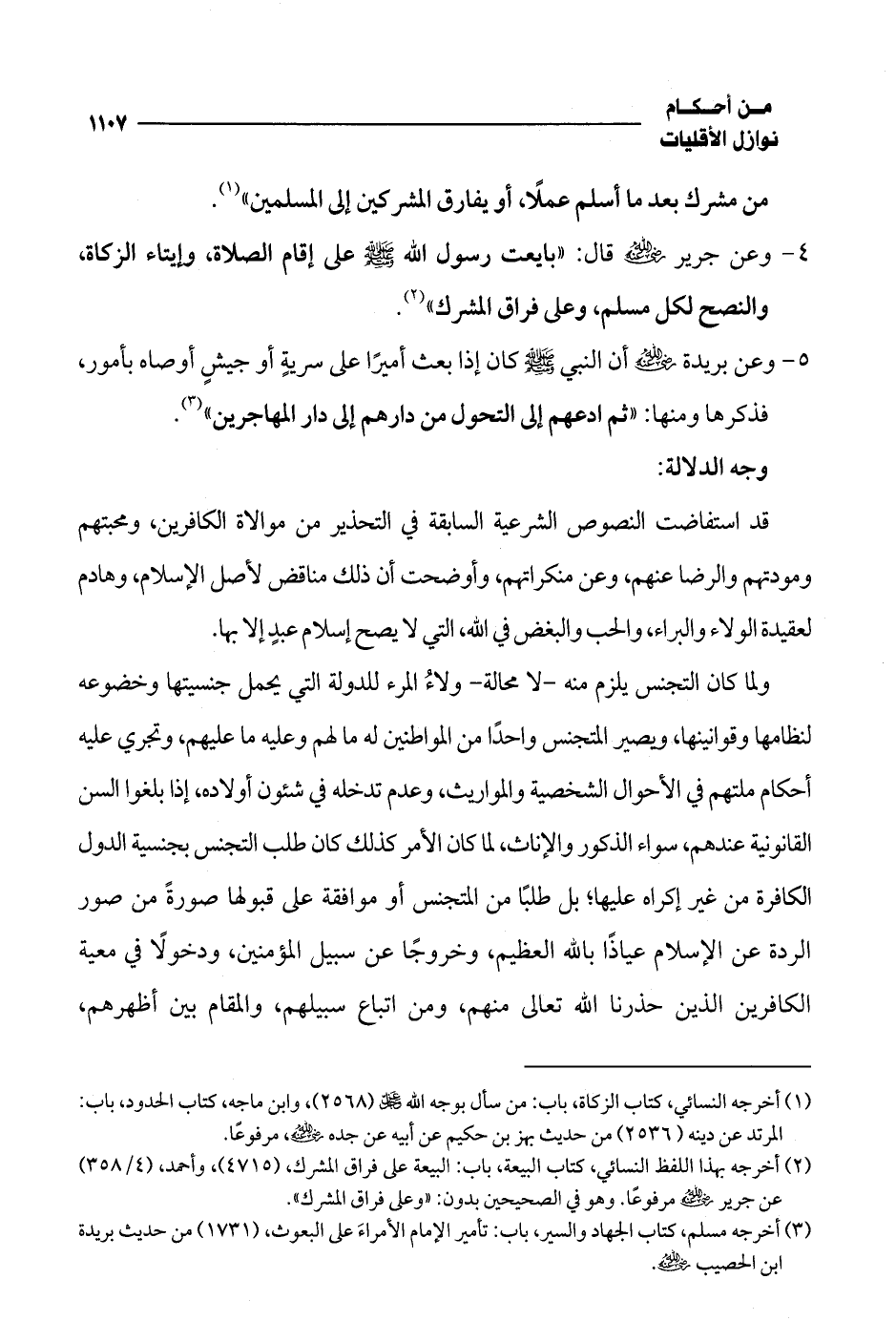 (¬2) أخرجه بهذا اللفظ النسائي، كتاب البيعة، باب: البيعة على فراق المشرك، (4715)، وأحمد، (4/ 358) عن جرير -رضي الله عنه- مرفوعًا. وهو في الصحيحين بدون: "وعلى فراق المشرك".