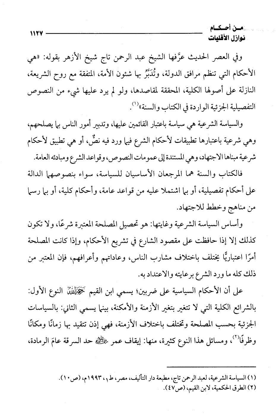 (¬1) السياسة الشرعية، لعبد الرحمن تاج، مطبعة دار التأليف، مصر، ط 1، 1993 م، (ص 10).