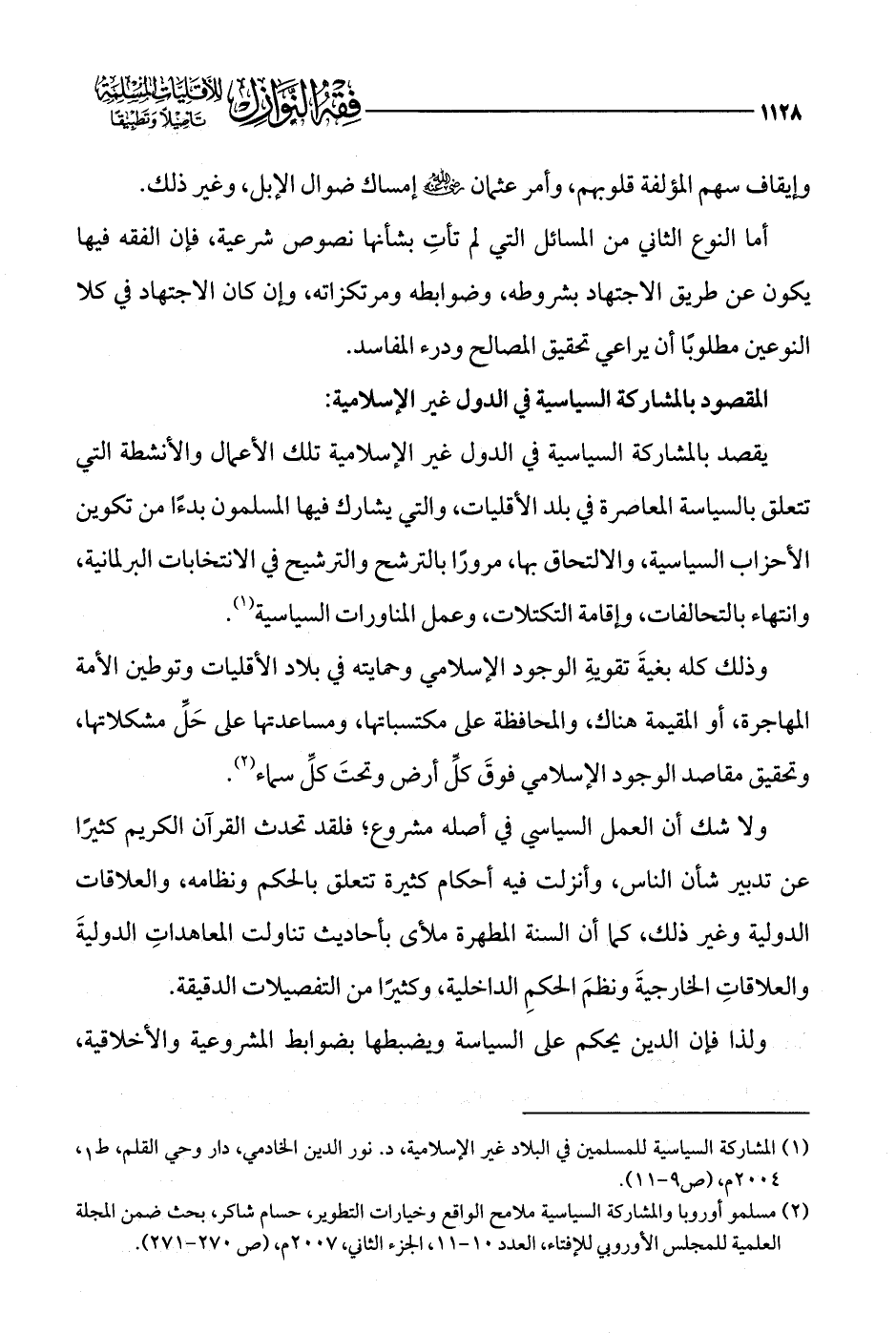 (¬1) المشاركة السياسية للمسلمين في البلاد غير الإسلامية، د. نور الدين الخادمي، دار وحي القلم، ط 1، 2004 م، (ص 9 - 11).