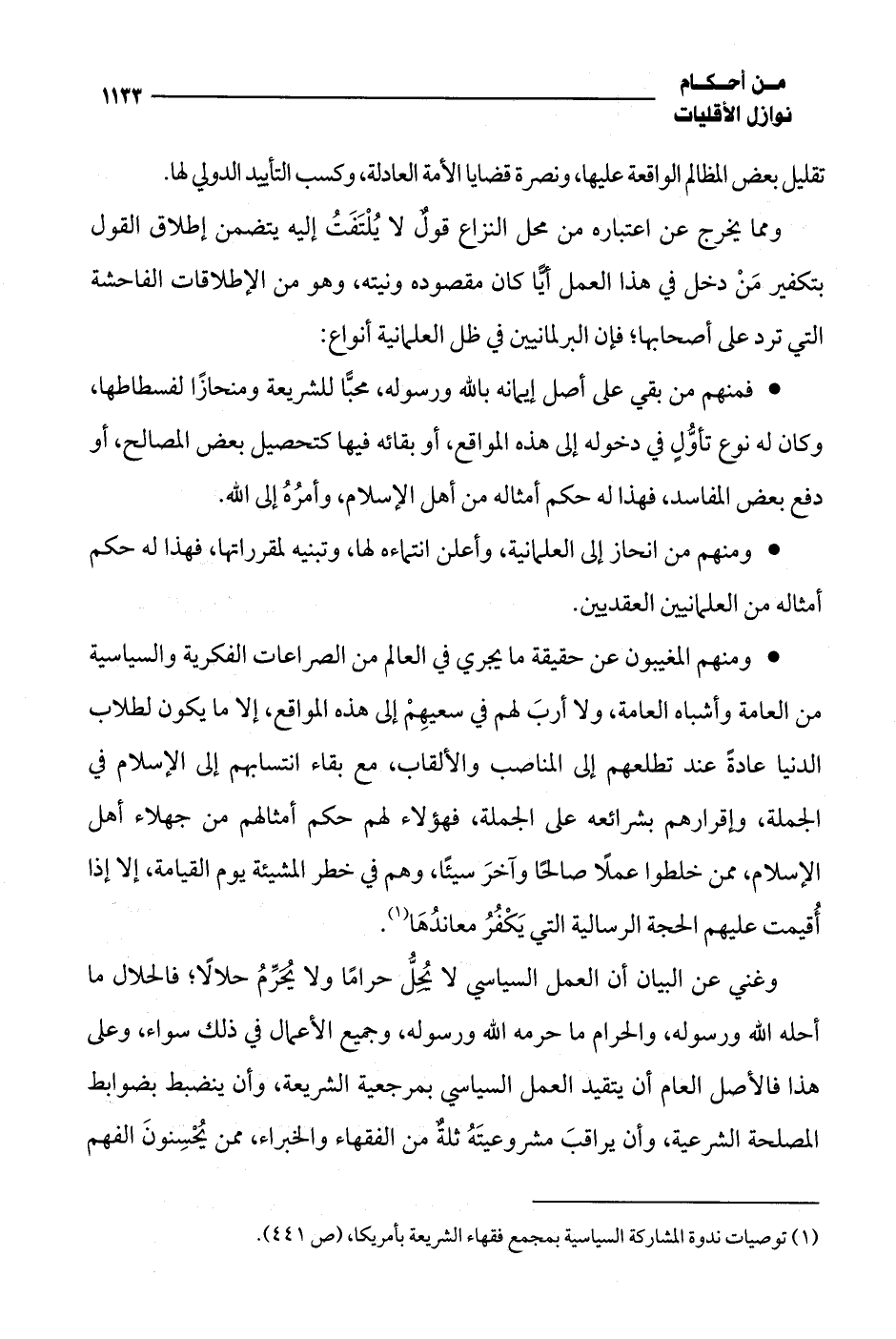 (¬1) توصيات ندوة المشاركة السياسية بمجمع فقهاء الشريعة بأمريكا، (ص 441).