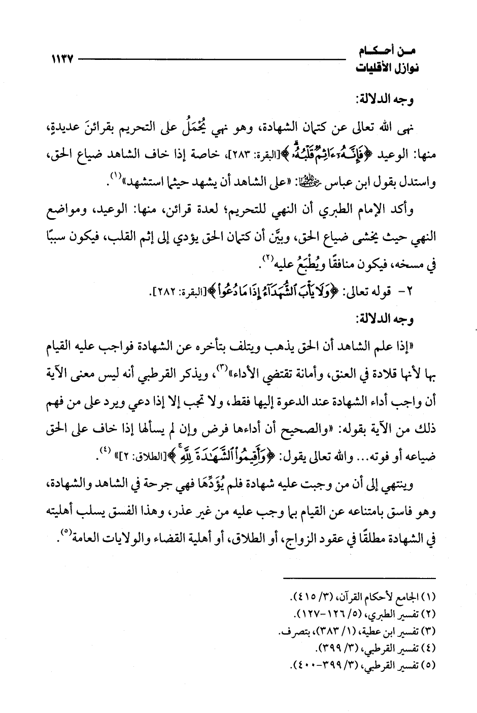 وينتهي إلى أن من وجبت عليه شهادة فلم يُؤَدِّهَا فهي جرحة في الشاهد والشهادة، وهو فاسق بامتناعه عن القيام بما وجب عليه من غير عذر، وهذا الفسق يسلب أهليته في الشهادة مطلقًا في عقود الزواج، أو الطلاق، أو أهلية القضاء والولايات العامة (¬5).