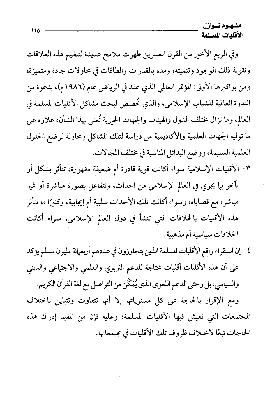4 - إن استقراء واقع الأقليات المسلمة الذين يتجاوزون في عددهم أربعمائة مليون مسلم يؤكد على أن هذه الأقليات أقليات محتاجة للدعم التربوي والعلمي والاجتماعي والديني والسياسي، بل وحتى الدعم اللغوي الذي يُمَكِّن من التواصل مع لغة القرآن الكريم.