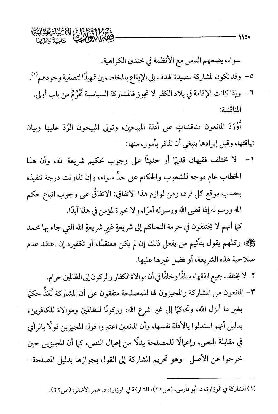 (¬1) المشاركة في الوزارة، د. أبو فارس، (ص 20)، المشاركة في الوزارة، د. عمر الأشقر، (ص 22).