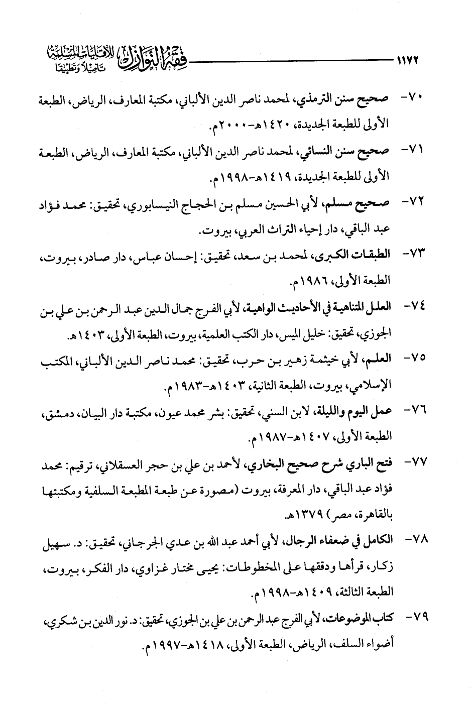 78 - الكامل في ضعفاء الرجال، لأبي أحمد عبد الله بن عدي الجرجاني، تحقيق: د. سهيل زكار، قرأها ودققها على المخطوطات: يحيى مختار غزاوي، دار الفكر، بيروت، الطبعة الثالثة، 1409 هـ - 1998 م.