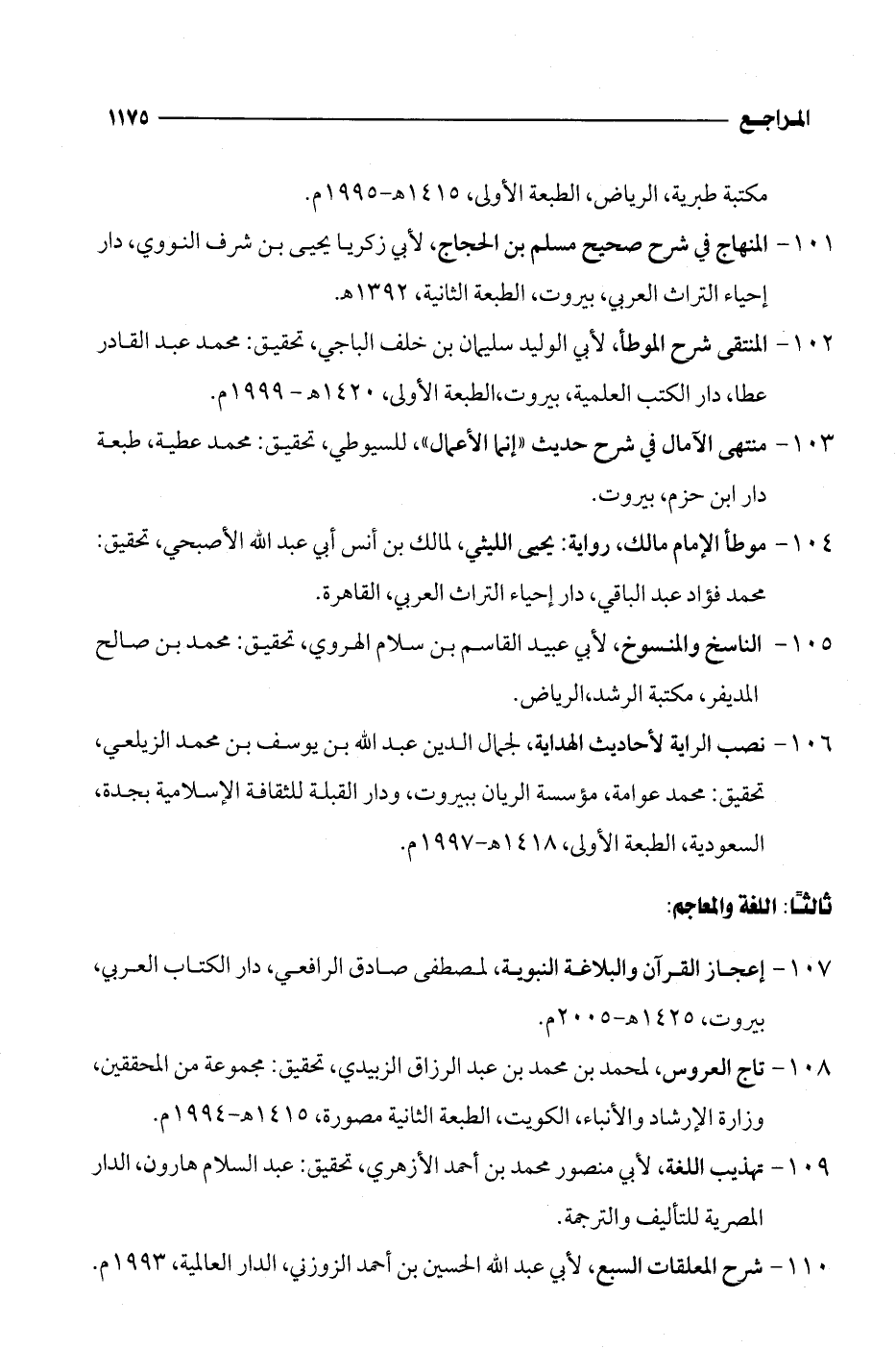 102 - المنتقى شرح الموطأ، لأبي الوليد سليمان بن خلف الباجي، تحقيق: محمد عبد القادر عطا، دار الكتب العلمية، بيروت، الطبعة الأولى، 1420 هـ - 1999 م.