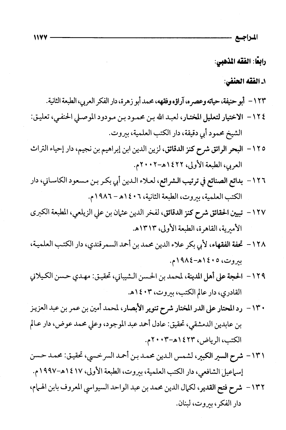 130 - رد المختار على الدر المختار شرح تنوير الأبصار، لمحمد أمين بن عمر بن عبد العزيز بن عابدين الدمشقي، تحقيق: عادل أحمد عبد الموجود، وعلي محمد عوض، دار عالم الكتب، الرياض، 1423 هـ - 2003 م.