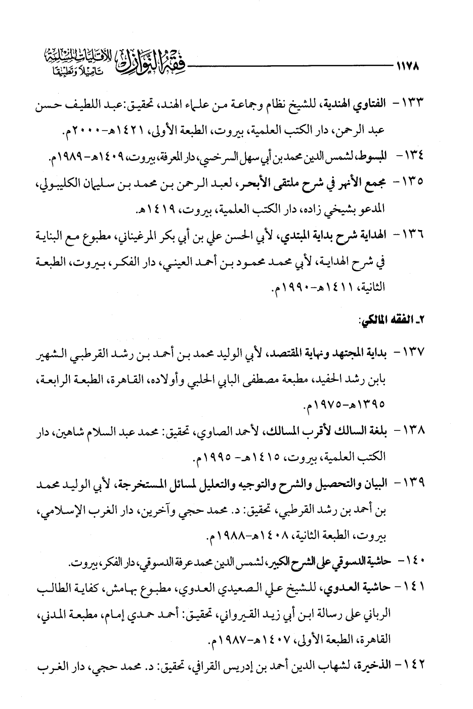 137 - بداية المجتهد ونهاية المقتصد، لأبي الوليد محمد بن أحمد بن رشد القرطبي الشهير بابن رشد الحفيد، مطبعة مصطفى البابي الحلبي وأولاده، القاهرة، الطبعة الرابعة، 1395 هـ - 1975 م.