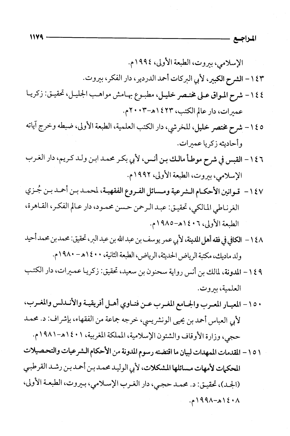 148 - الكافي في فقه أهل المدينة، لأبي عمر يوسف بن عبد الله بن عبد البر، تحقيق: محمد بن محمد أحيد ولد ماديك، مكتبة الرياض الحديثة، الرياض، الطبعة الثانية، 1400 هـ - 1985 م.