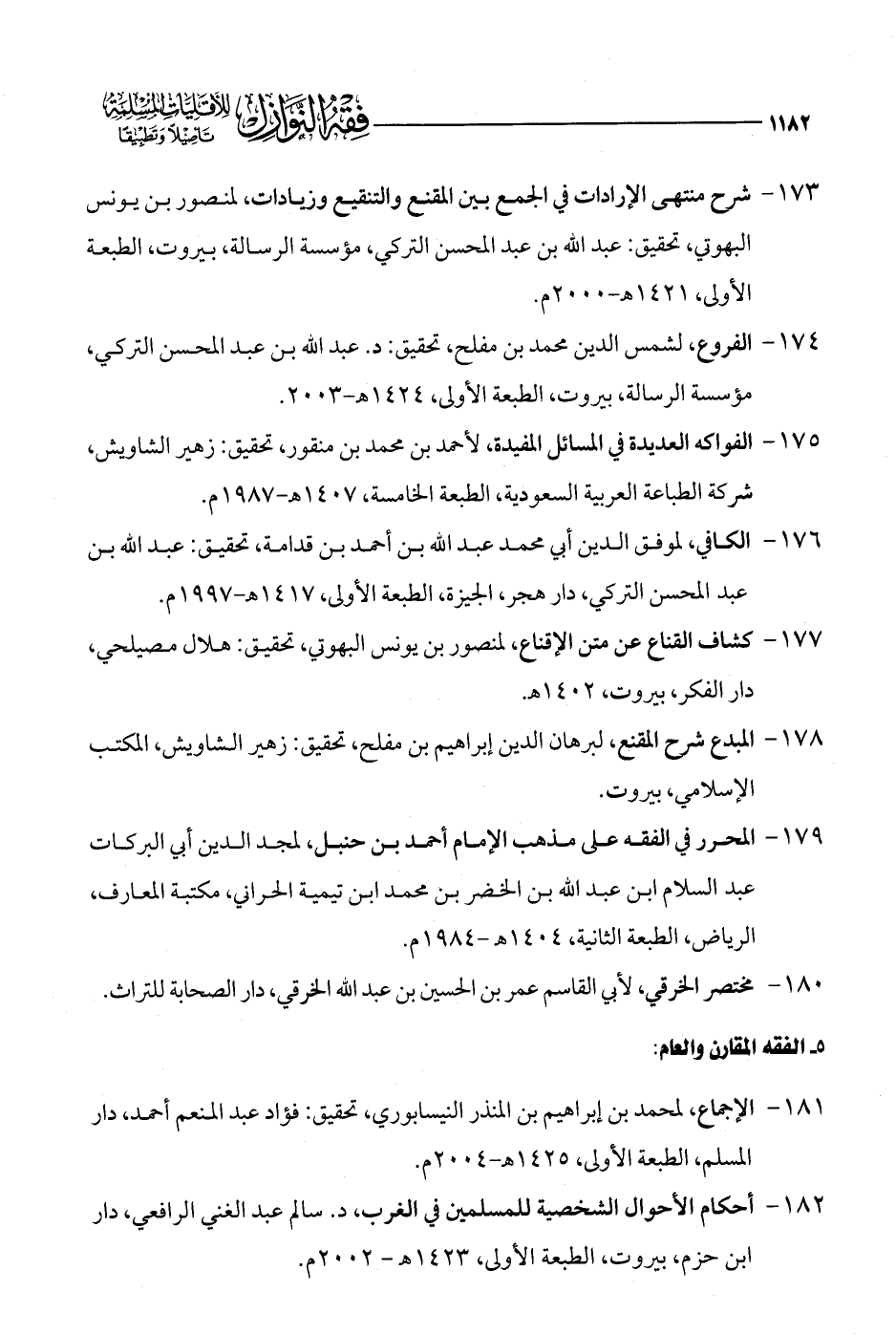 174 - الفروع، لشمس الدين محمد بن مفلح، تحقيق: د. عبد الله بن عبد المحسن التركي، مؤسسة الرسالة، بيروت، الطبعة الأولى، 1424 هـ - 2003 م.