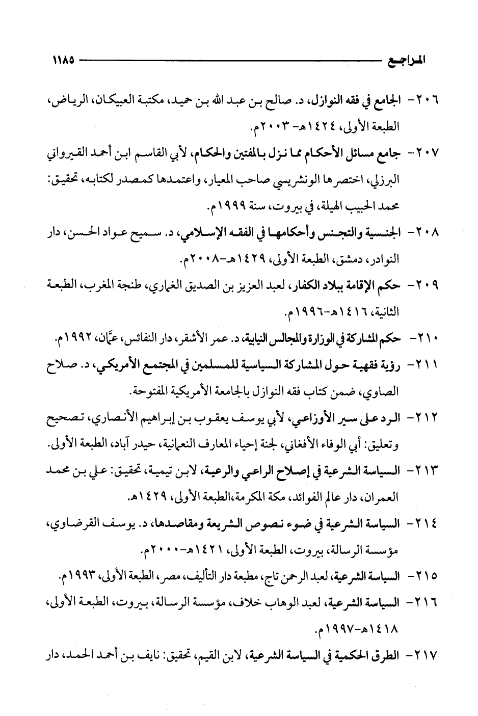 214 - السياسة الشرعية في ضوء نصوص الشريعة ومقاصدها، د. يوسف القرضاوي، مؤسسة الرسالة، بيروت، الطبعة الأولى، 1421 هـ - 2000 م.