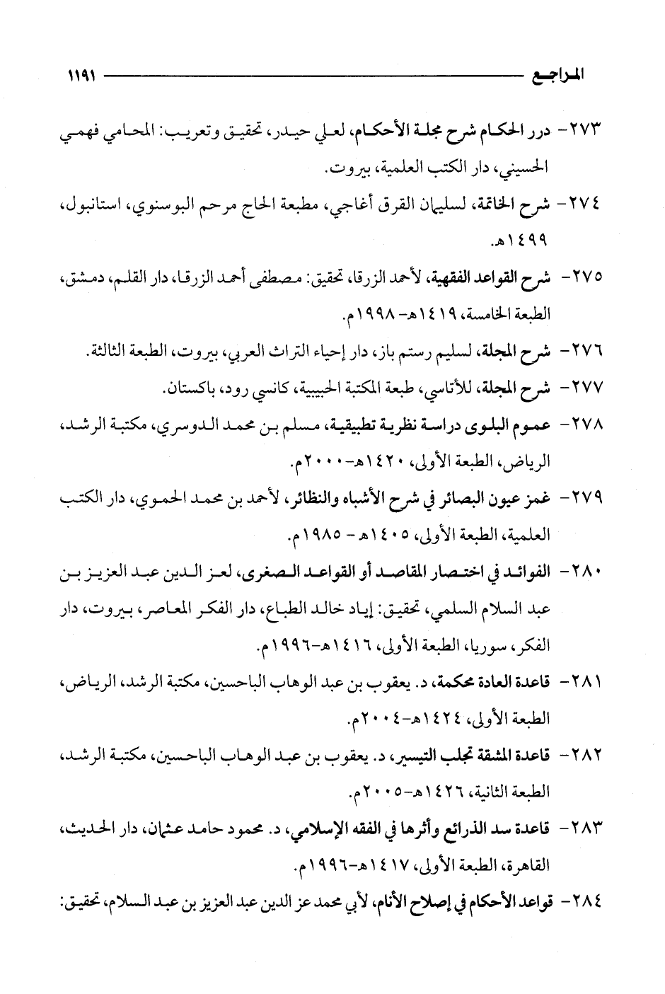 273 - درر الحكام شرح مجلة الأحكام، لعلي حيدر، تحقيق وتعريب: المحامي فهمي الحسيني، دار الكتب العلمية، بيروت.