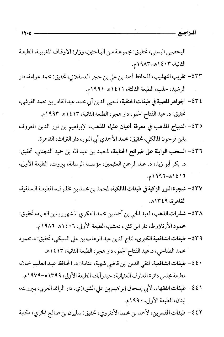 440 - طبقات الشافعية، لتقي الدين ابن قاضي شهبة، عناية: د. الحافظ عبد العليم خان، مطبعة مجلس دائرة المعارف العثمانية، حيدرآباد، الطبعة الأولى، 1399 هـ - 1979 م.