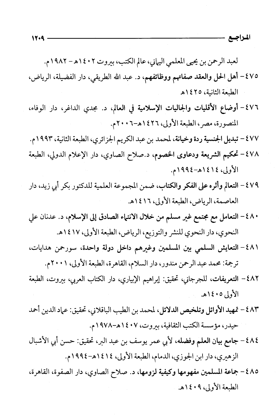 475 - أهل الحل والعقد صفاتهم ووظائفهم، د. عبد الله الطريقي، دار الفضيلة، الرياض، الطبعة الثانية، 1425 هـ.