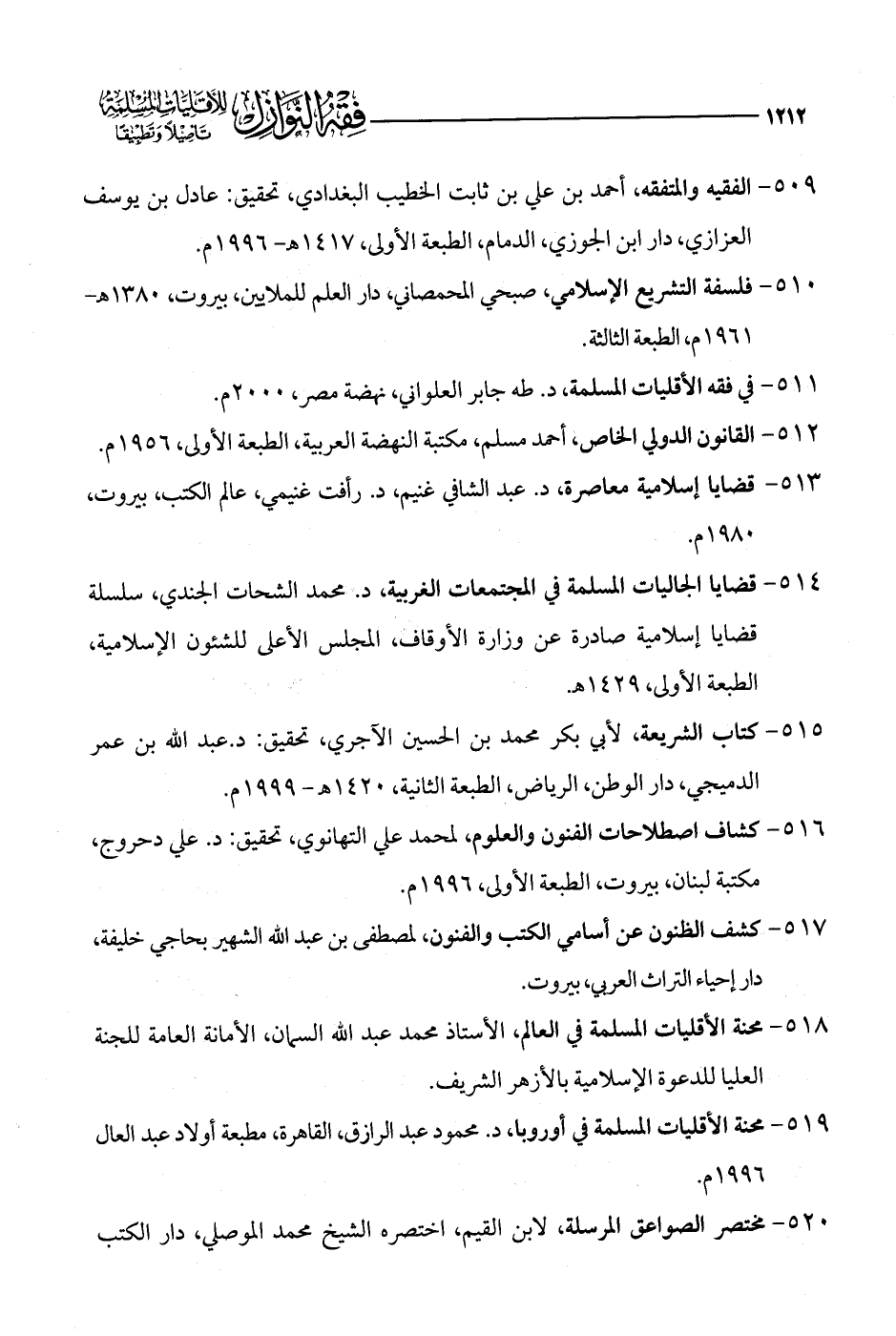 511 - في فقه الأقليات المسلمة، د. طه جابر العلواني، نهضة مصر، 2000 م.