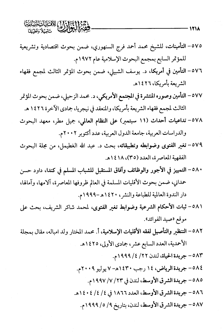576 - التأمين في أمريكا، د. يوسف الشبيلي، ضمن بحوث المؤتمر الثالث لمجمع فقهاء الشريعة بأمريكا، 1426 هـ.