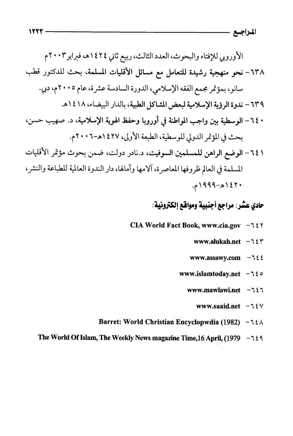 640 - الوسطية بين واجب المواطنة في أوروبا وحفظ الهوية الإسلامية، د. صهيب حسن، بحث في المؤتمر الدولي للوسطية، الطبعة الأولى، 1427 هـ - 2006 م.