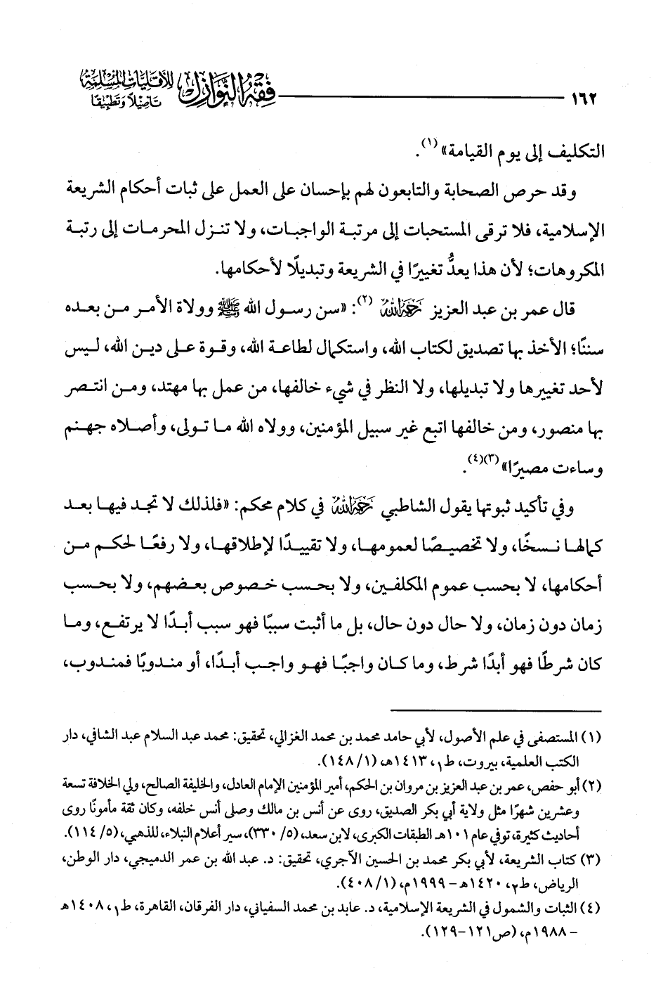 (¬4) الثبات والشمول في الشريعة الإسلامية، د. عابد بن محمد السفياني، دار الفرقان، القاهرة، ط 1، 1408 هـ - 1988 م، (ص 121 - 129).