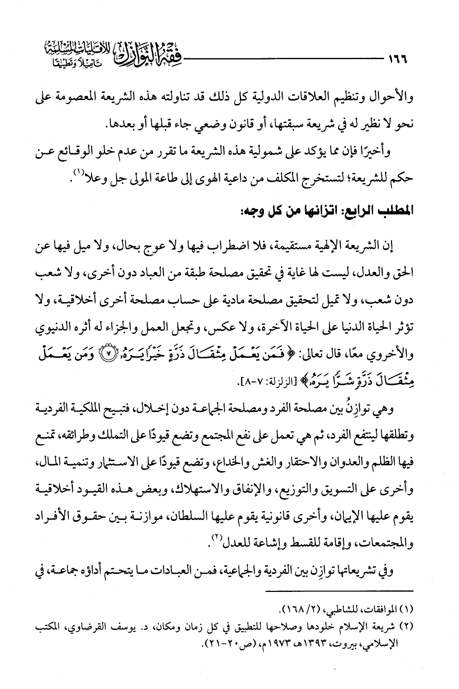 (¬2) شريعة الإسلام خلودها وصلاحها للتطبيق في كل زمان ومكان، د. يوسف القرضاوي، المكتب الإسلامي، بيروت، 1393 هـ، 1973 م، (ص 20 - 21).