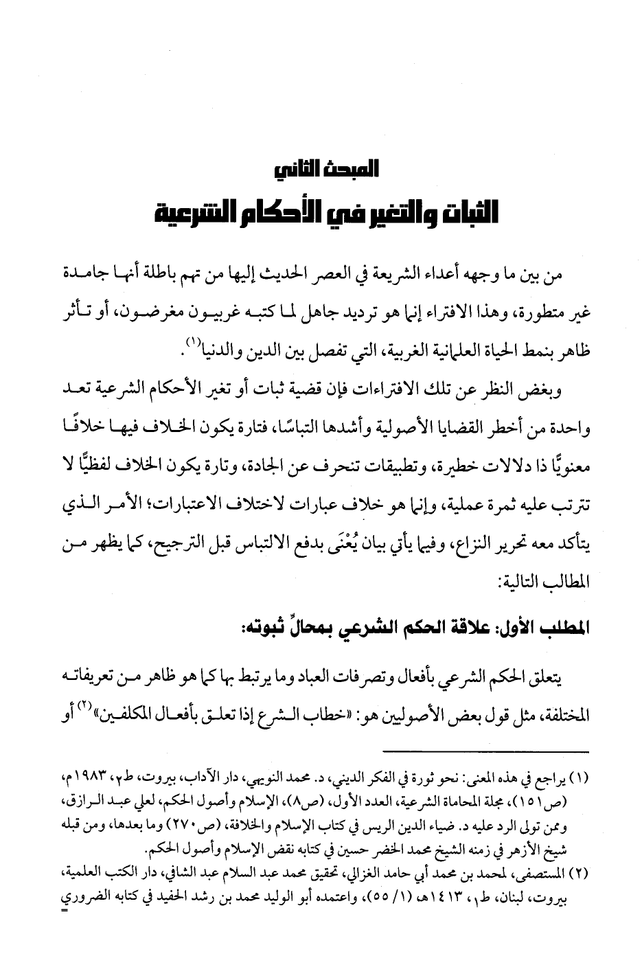 وبغض النظر عن تلك الافتراءات فإن قضية ثبات أو تغير الأحكام الشرعية تعد واحدة من أخطر القضايا الأصولية وأشدها التباسًا، فتارة يكون الخلاف فيها خلافًا معنويًا ذا دلالات خطيرة، وتطبيقات تنحرف عن الجادة، وتارة يكون الخلاف لفظيًّا لا تترتب عليه ثمرة عملية، وإنما هو خلاف عبارات لاختلاف الاعتبارات؛ الأمر الذي يتأكد معه تحرير النزاع، وفيما يأتي بيان يُعْنَى بدفع الالتباس قبل الترجيح، كما يظهر من المطالب التالية: