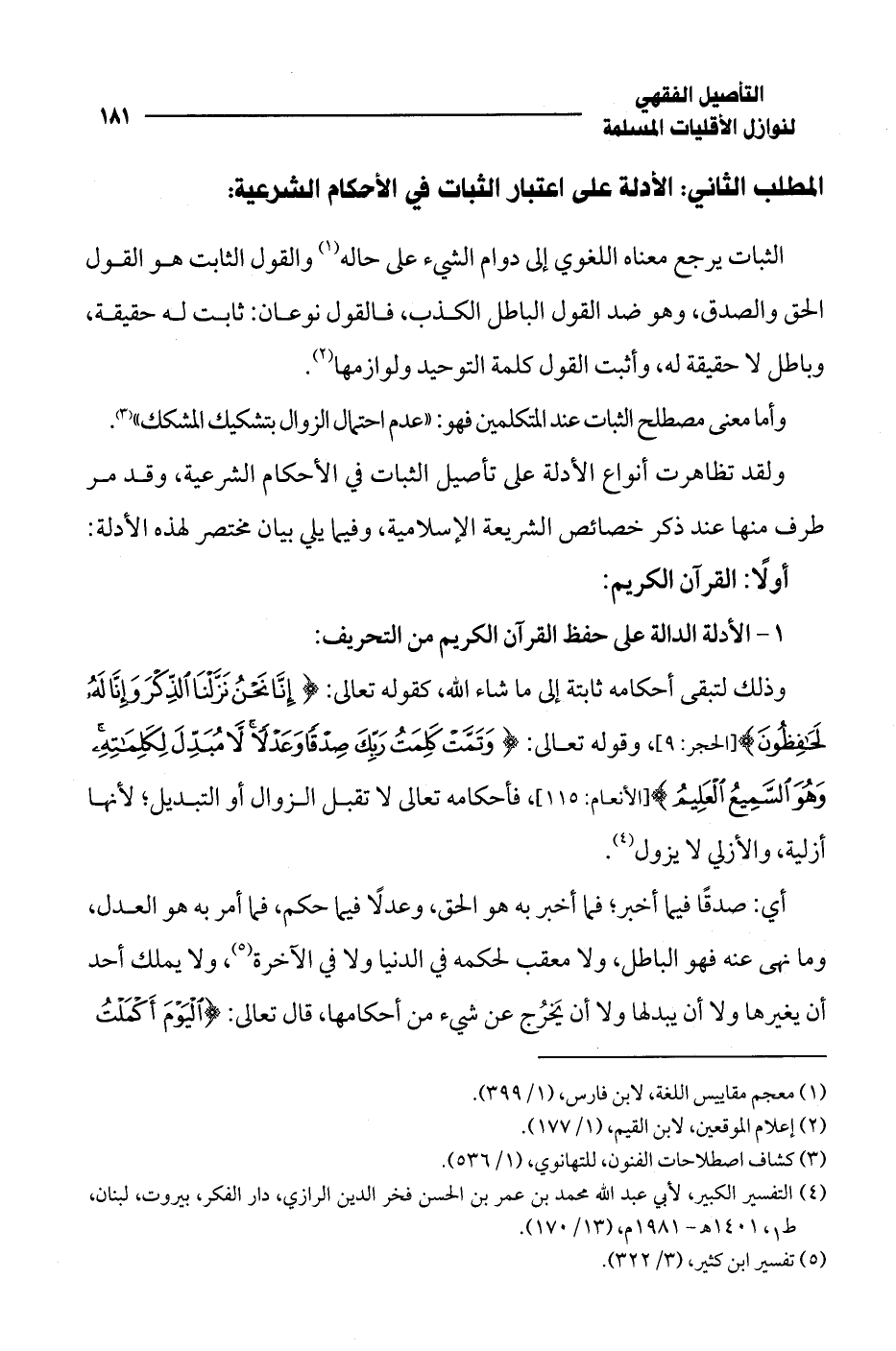 (¬4) التفسير الكبير، لأبي عبد الله محمد بن عمر بن الحسن فخر الدين الرازي، دار الفكر، بيروت، لبنان، ط 1، 1401 هـ - 1981 م، (13/ 170).