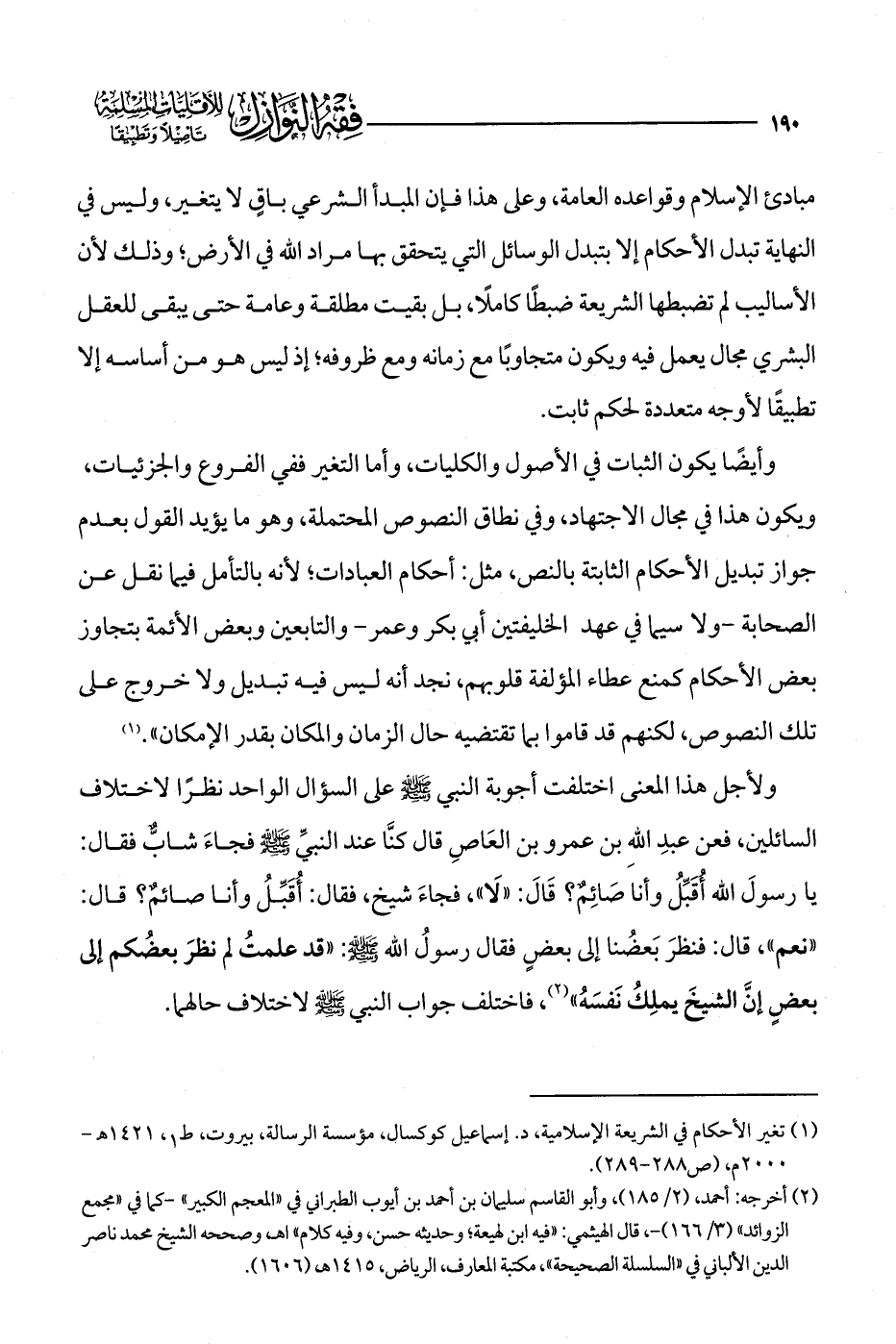 (¬1) تغير الأحكام في الشريعة الإسلامية، د. إسماعيل كوكسال، مؤسسة الرسالة، بيروت، ط 1، 1421 هـ - 2000 م، (ص 288 - 289).