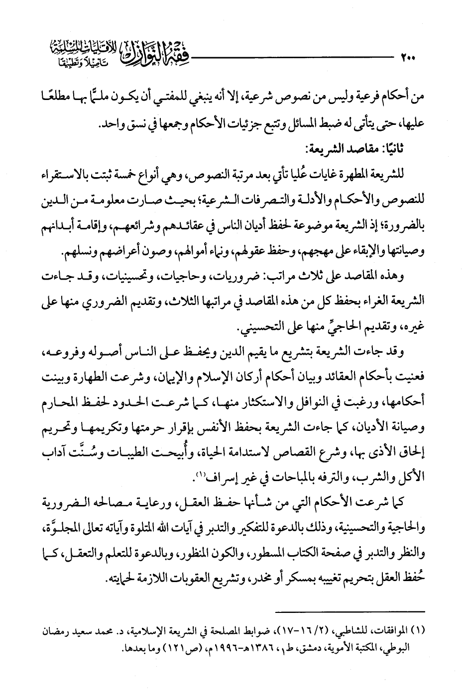 (¬1) الموافقات، للشاطبي، (2/ 16 - 17)، ضوابط المصلحة في الشريعة الإسلامية، د. محمد سعيد رمضان البوطي، المكتبة الأموية، دمشق، ط 1، 1386 هـ - 1996 م، (ص 121) وما بعدها.