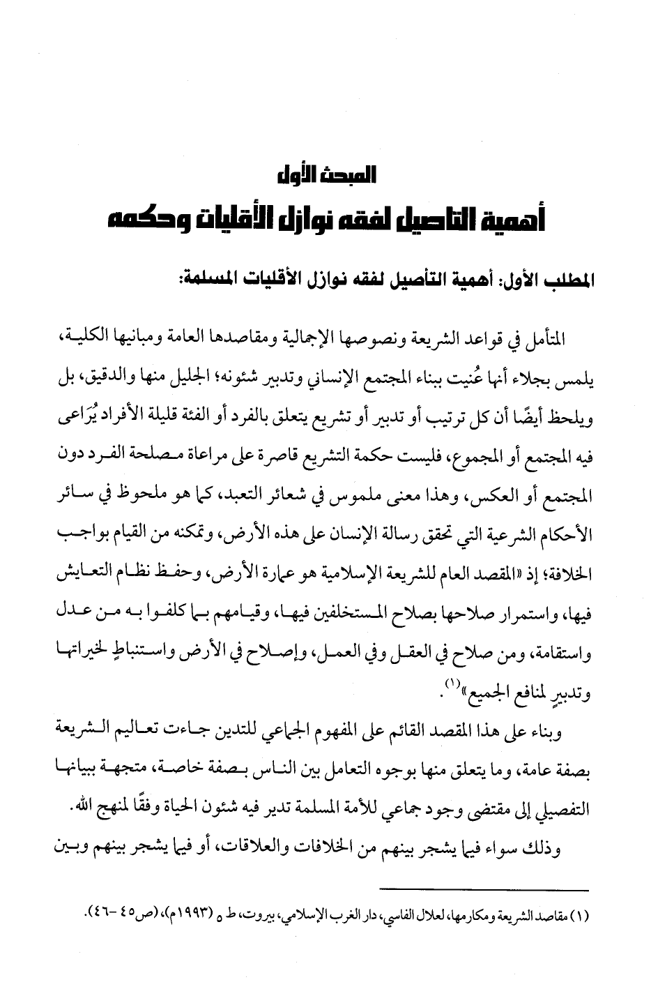 (¬1) مقاصد الشريعة ومكارمها، لعلال الفاسي، دار الغرب الإسلامي، بيروت، ط 5 (1993 م)، (ص 45 - 46).