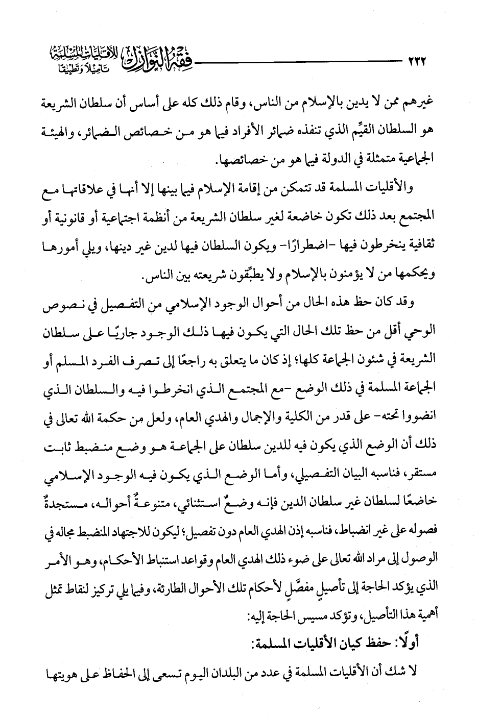 وقد كان حظ هذه الحال من أحوال الوجود الإسلامي من التفصيل في نصوص الوحي أقل من حظ تلك الحال التي يكون فيها ذلك الوجود جاريًا على سلطان الشريعة في شئون الجماعة كلها؛ إذ كان ما يتعلق به راجعًا إلى تصرف الفرد المسلم أو الجماعة المسلمة في ذلك الوضع -مع المجتمع الذي انخرطوا فيه والسلطان الذي انضووا تحته- على قدر من الكلية والإجمال والهدي العام، ولعل من حكمة الله تعالى في ذلك أن الوضع الذي يكون فيه للدين سلطان على الجماعة هو وضع منضبط ثابت مستقر، فناسبه البيان التفصيلي، وأما الوضع الذي يكون فيه الوجود الإسلامي خاضعًا لسلطان غير سلطان الدين فإنه وضعٌ استثنائي، متنوعةٌ أحواله، مستجدةٌ فصوله على غير انضباط، فناسبه إذن الهدي العام دون تفصيل؛ ليكون للاجتهاد المنضبط مجاله في الوصول إلى مراد الله تعالى على ضوء ذلك الهدي العام وقواعد استنباط الأحكام، وهو الأمر الذي يؤكد الحاجة إلى تأصيلٍ مفصَّلٍ لأحكام تلك الأحوال الطارئة، وفيما يلي تركيز لنقاط تمثل أهمية هذا التأصيل، وتؤكد مسيس الحاجة إليه: