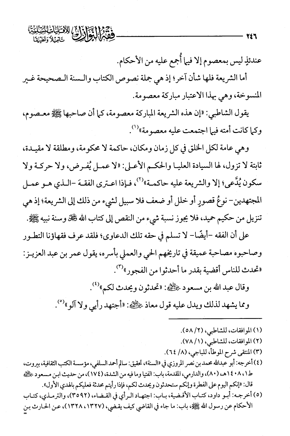 على أن الفقه -أيضًا- لا تسلم في حقه تلك الدعاوى؛ فلقد عرف فقهاؤنا التطور وصاحبوه مصاحبة عميقة في تاريخهم الحي والعملي بأسره، يقول عمر بن عبد العزيز: "تحدث للناس أقضية بقدر ما أحدثوا من الفجور" (¬3).