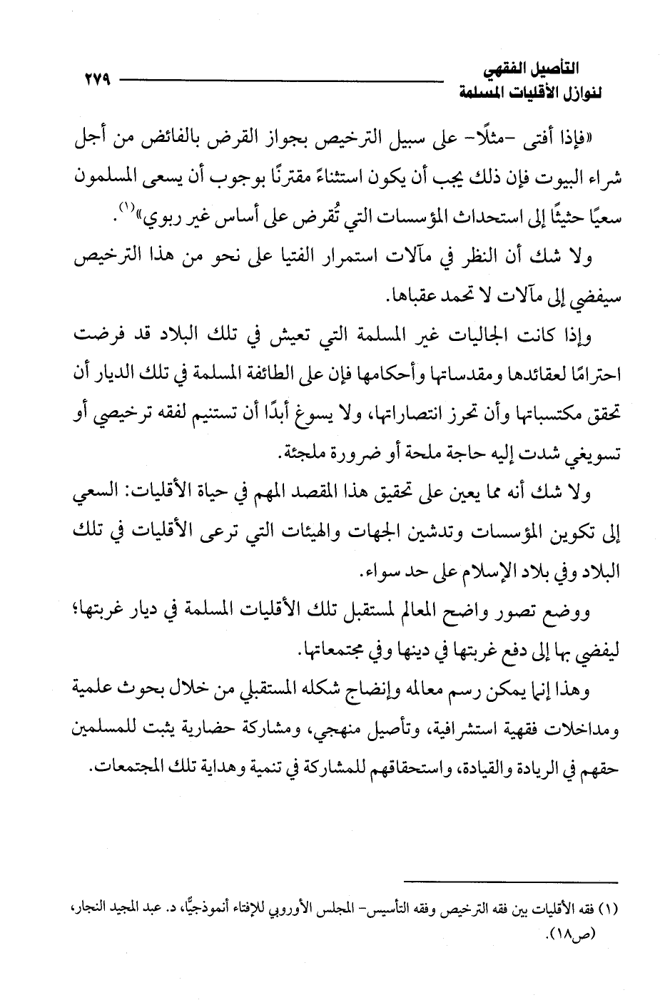 (¬1) فقه الأقليات بين فقه الترخيص وفقه التأسيس - المجلس الأوروبي للإفتاء أنموذجيًّا، د. عبد المجيد النجار، (ص 18).