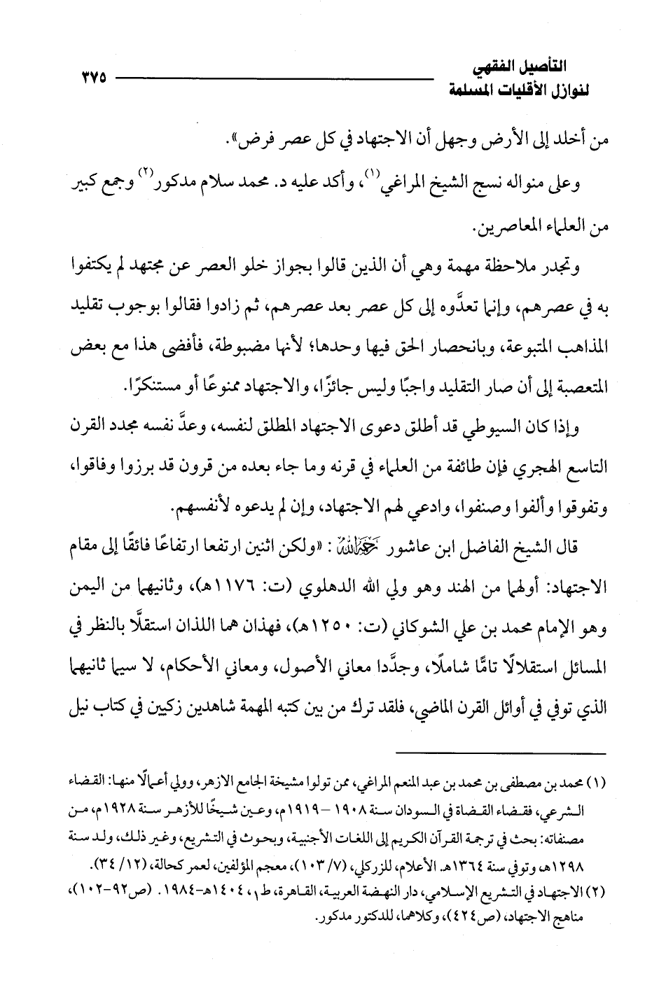 وعلى منواله نسج الشيخ المراغي (¬1)، وأكد عليه د. محمد سلام مدكور (¬2) وجمع كبير من العلماء المعاصرين.