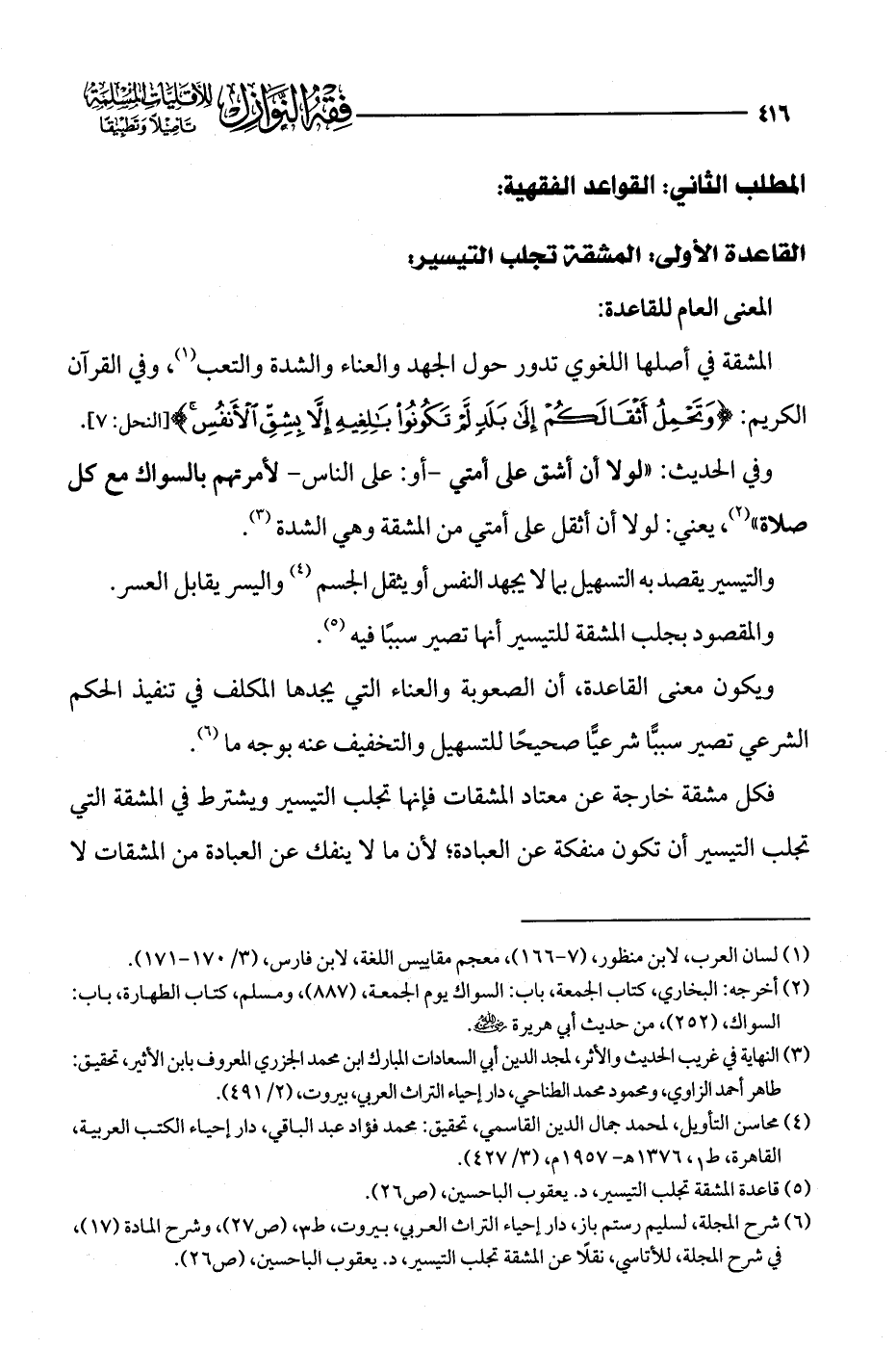 (¬5) قاعدة المشقة تجلب التيسير، د. يعقوب الباحسين، (ص 26).