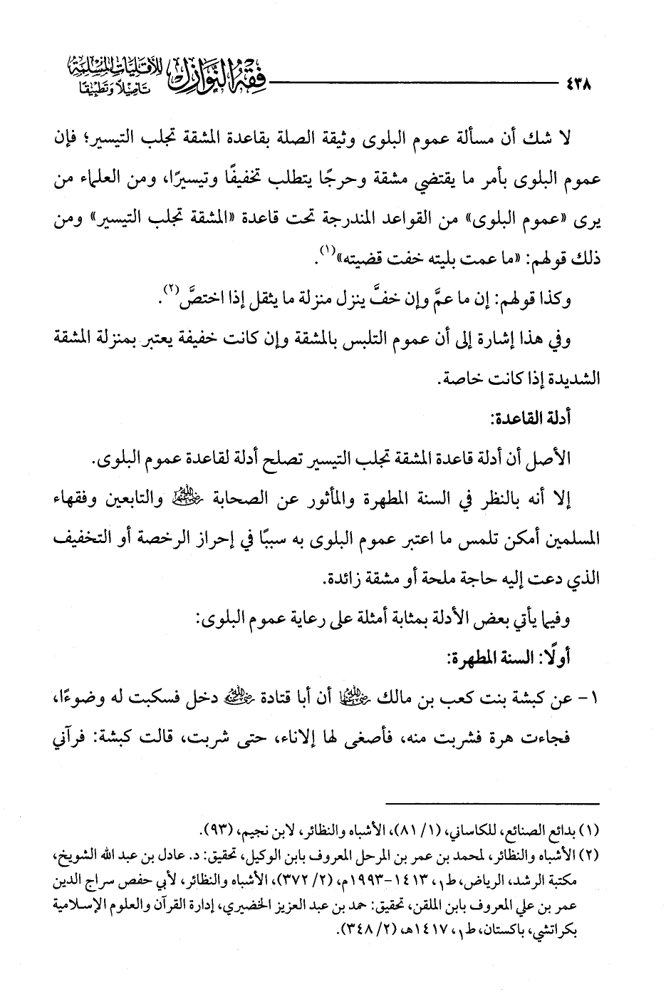 (¬2) الأشباه والنظائر، لمحمد بن عمر بن المرحل المعروف بابن الوكيل، تحقيق: د. عادل بن عبد الله الشويخ، مكتبة الرشد، الرياض، ط 1، 1413 - 1993 م، (2/ 372)، الأشباه والنظائر، لأبي حفص سراج الدين عمر بن علي المعروف بابن الملقن، تحقيق: حمد بن عبد العزيز الخضيري، إدارة القرآن والعلوم الإسلامية بكراتشي، باكستان، ط 1، 1417 هـ، (2/ 348).