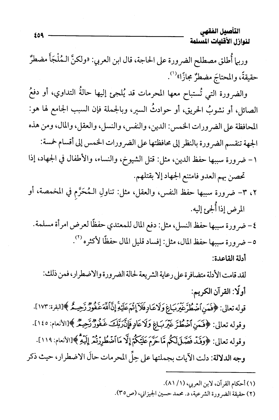 (¬2) حقيقة الضرورة الشرعية، د. محمد حسين الجيزاني، (ص 35).