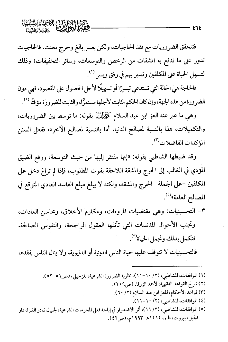 (¬1) الموافقات، للشاطبي، (2/ 10 - 11)، نظرية الضرورة الشرعية، للزحيلي، (ص 51 - 52).