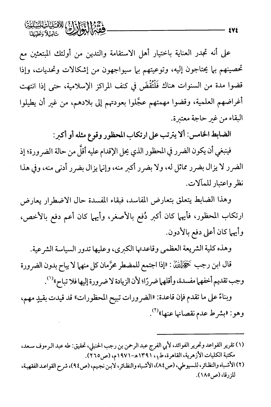 (¬1) تقرير القواعد وتحرير الفوائد، لأبي الفرج عبد الرحمن بن رجب الحنبلي، تحقيق: طه عبد الرءوف سعد، مكتبة الكليات الأزهرية، القاهرة، ط 1، 1391 هـ - 1971 م، (ص 265).