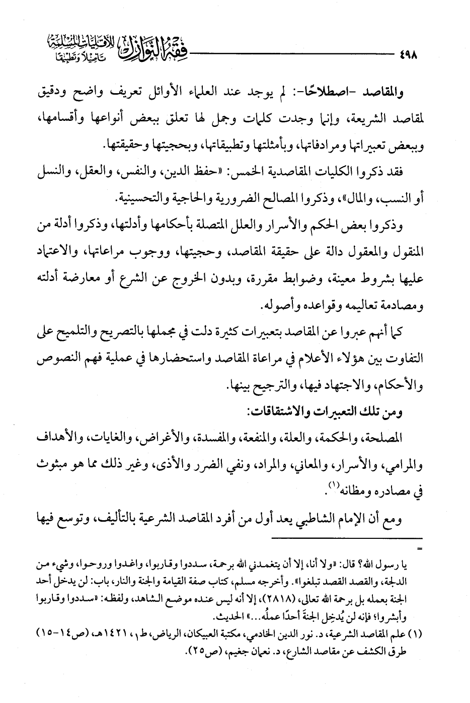 (¬1) علم المقاصد الشرعية، د. نور الدين الخادمي، مكتبة العبيكان، الرياض، ط 1، 1421 هـ، (ص 14 - 15) طرق الكشف عن مقاصد الشارع، د. نعمان جغيم، (ص 25).