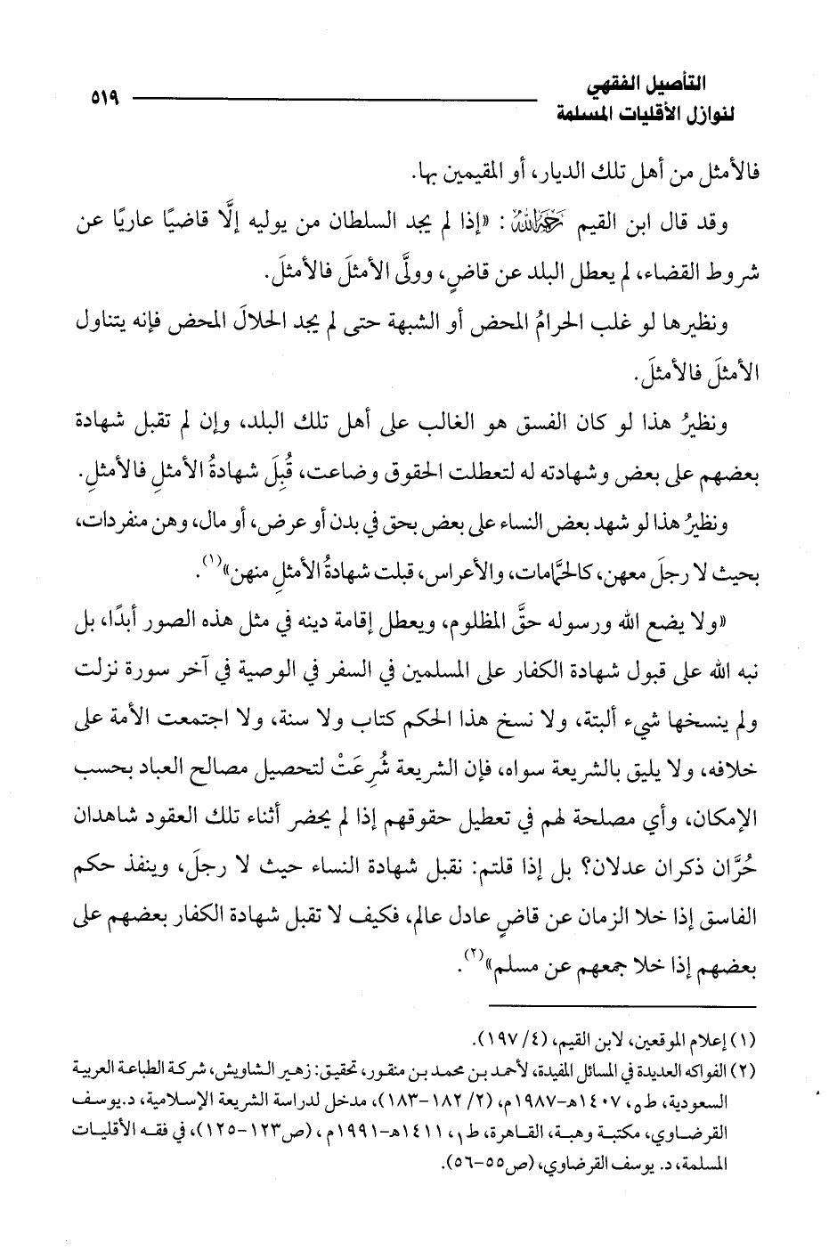 (¬2) الفواكه العديدة في المسائل المفيدة، لأحمد بن محمد بن منقور، تحقيق: زهير الشاويش، شركة الطباعة العربية السعودية، ط 5، 1407 هـ - 1987 م، (2/ 182 - 183)، مدخل لدراسة الشريعة الإسلامية، د. يوسف القرضاوي، مكتبة وهبة، القاهرة، ط 1، 1411 هـ - 1991 م، (ص 123 - 125)، في فقه الأقليات المسلمة، د. يوسف القرضاوي، (ص 55 - 56).