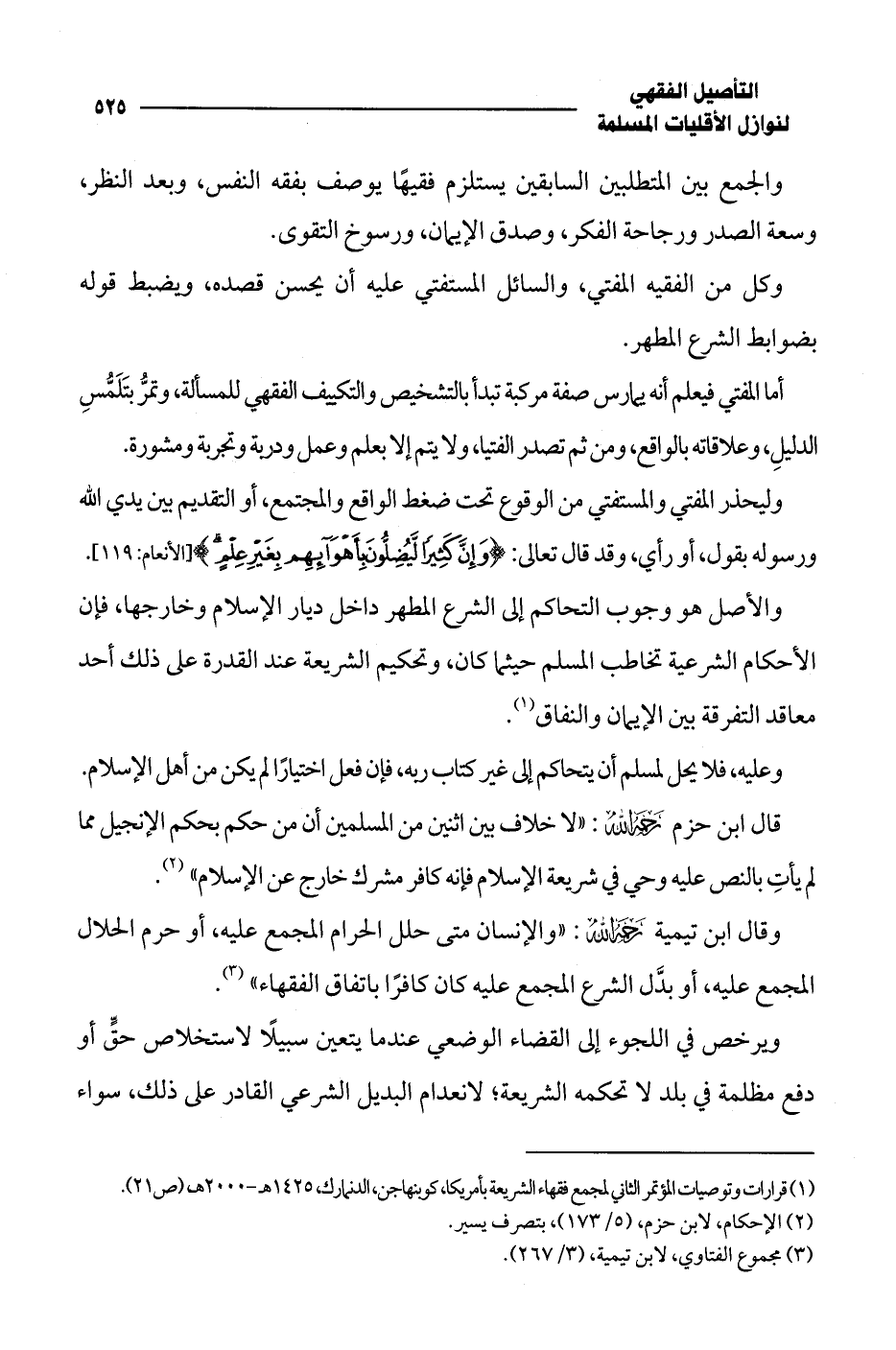 والجمع بين المتطلبين السابقين يستلزم فقيهًا يوصف بفقه النفس، وبعد النظر، وسعة الصدر ورجاحة الفكر، وصدق الإيمان، ورسوخ التقوى.