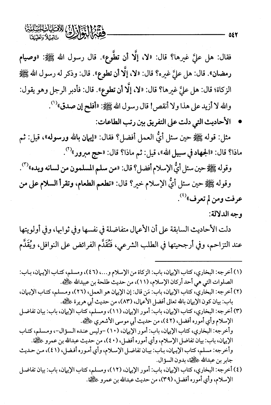 • الأحاديث التي دلت على التفريق بين رتب الطاعات:
