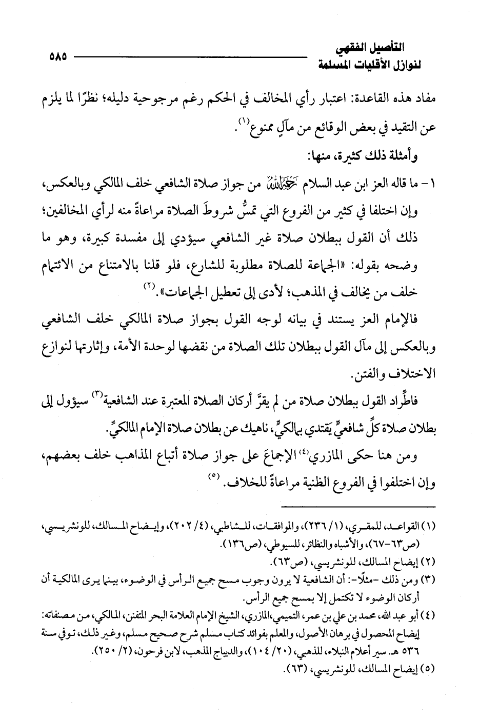 ومن هنا حكى المازري (¬4) الإجماعَ على جواز صلاة أتباع المذاهب خلف بعضهم، وإن اختلفوا في الفروع الظنية مراعاةً للخلاف. (¬5)