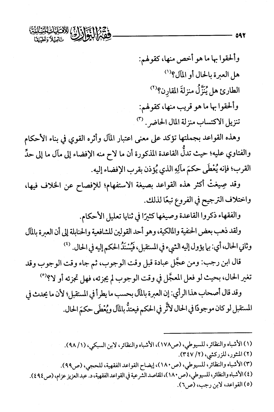 (¬4) الأشباه والنظائر، للسيوطي، (ص 180)، المقاصد الشرعية في القواعد الفقهية، د. عبد العزيز عزام، (ص 494).